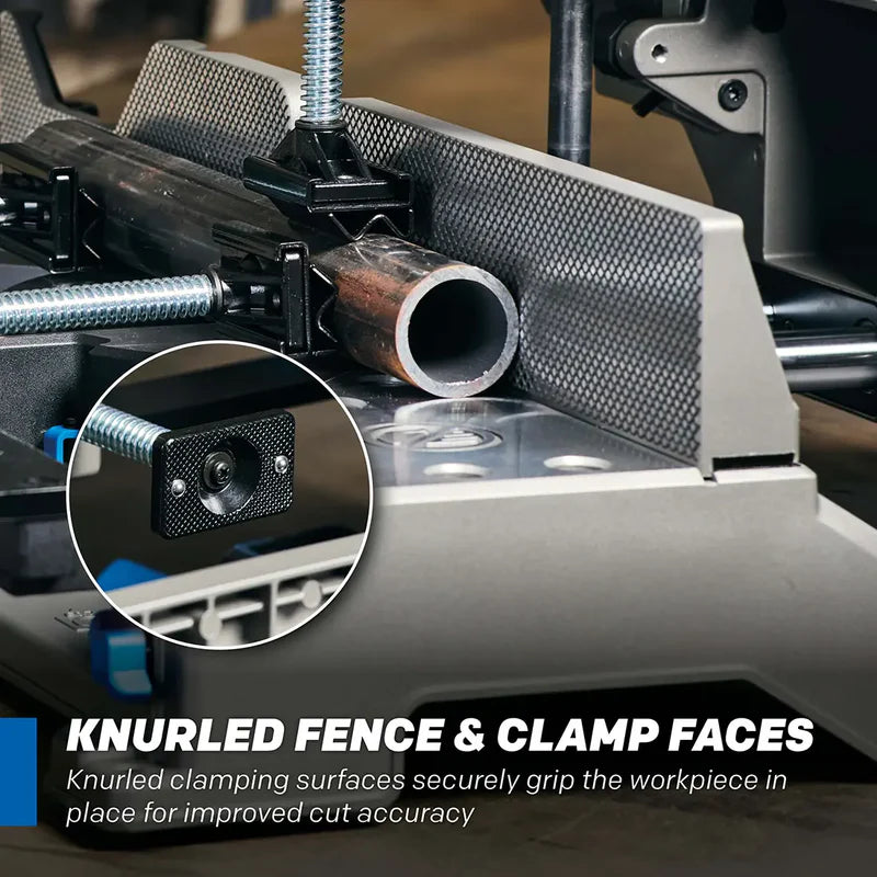 - Knurled finish on the fence and clamp face securely grips the workpiece and supports accuracy