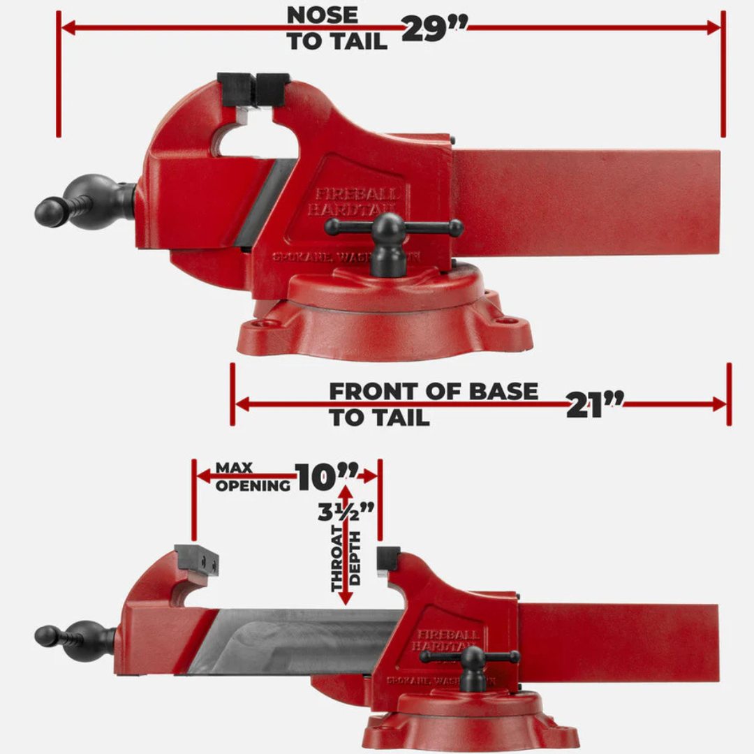 The Fireball Hardtail Vise features the strongest clamping force and largest opening of any production vise in the world. It has been designed with usability, style, strength, and longevity in mind to outlast its owners.