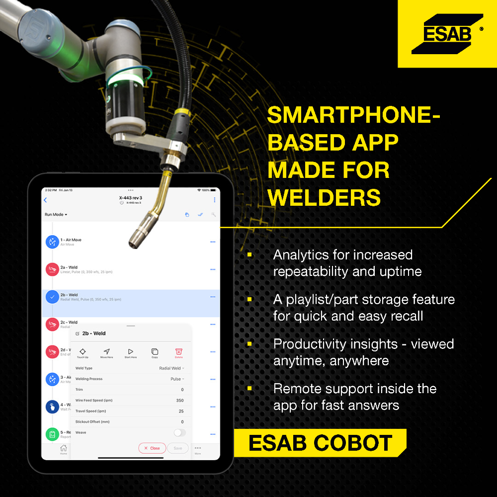 Best of all, there’s no complicated programming like with traditional robotics. Cobots are made for welders, not programmers, with app-based software that is simple and intuitive.